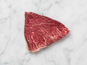 Picanha, also known as coulotte or top sirloin cap, is a triangular-shaped cut from the top sirloin. With our F1 American Wagyu, its defining characteristic is the thick, even layer of fat that covers one side, which becomes a key source of its luxurious flavor. This fat cap melts into the muscle as it cooks, creating an exceptionally tender and moist steak with a complex beef flavor. Picanha is traditionally grilled as a whole roast or cut into crescent-shaped steaks, always cooked with the fat cap on and sliced against the grain after resting.